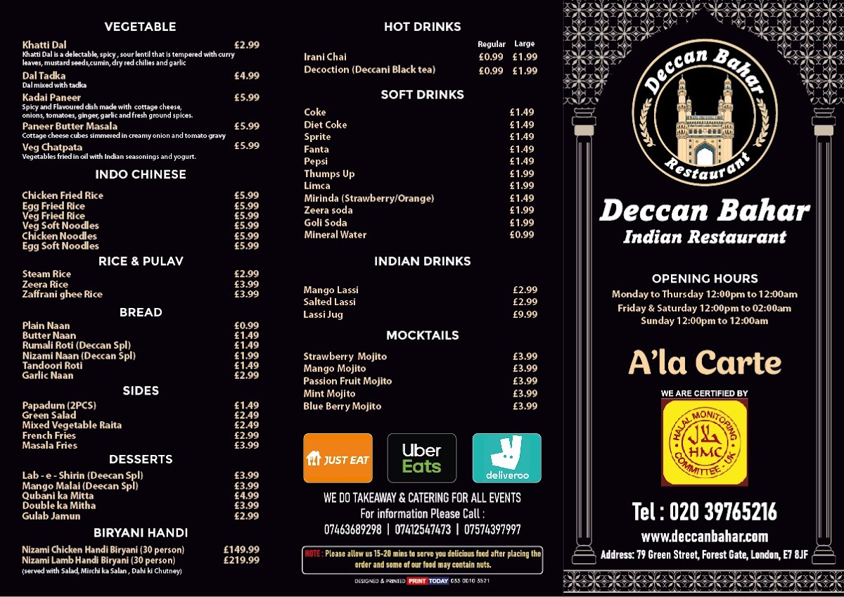 Located in the bustling heart of London, Deccan Bahar is redefining the culinary landscape with authentic Hyderabadi cuisine. Their menu is a celebration of vibrant flavors and spices, featuring mouthwatering biryanis that have garnered rave reviews. The Hyderabadi Biryani, with its tender meat and fragrant rice, is a must-try, capturing the essence of traditional Indian cooking.